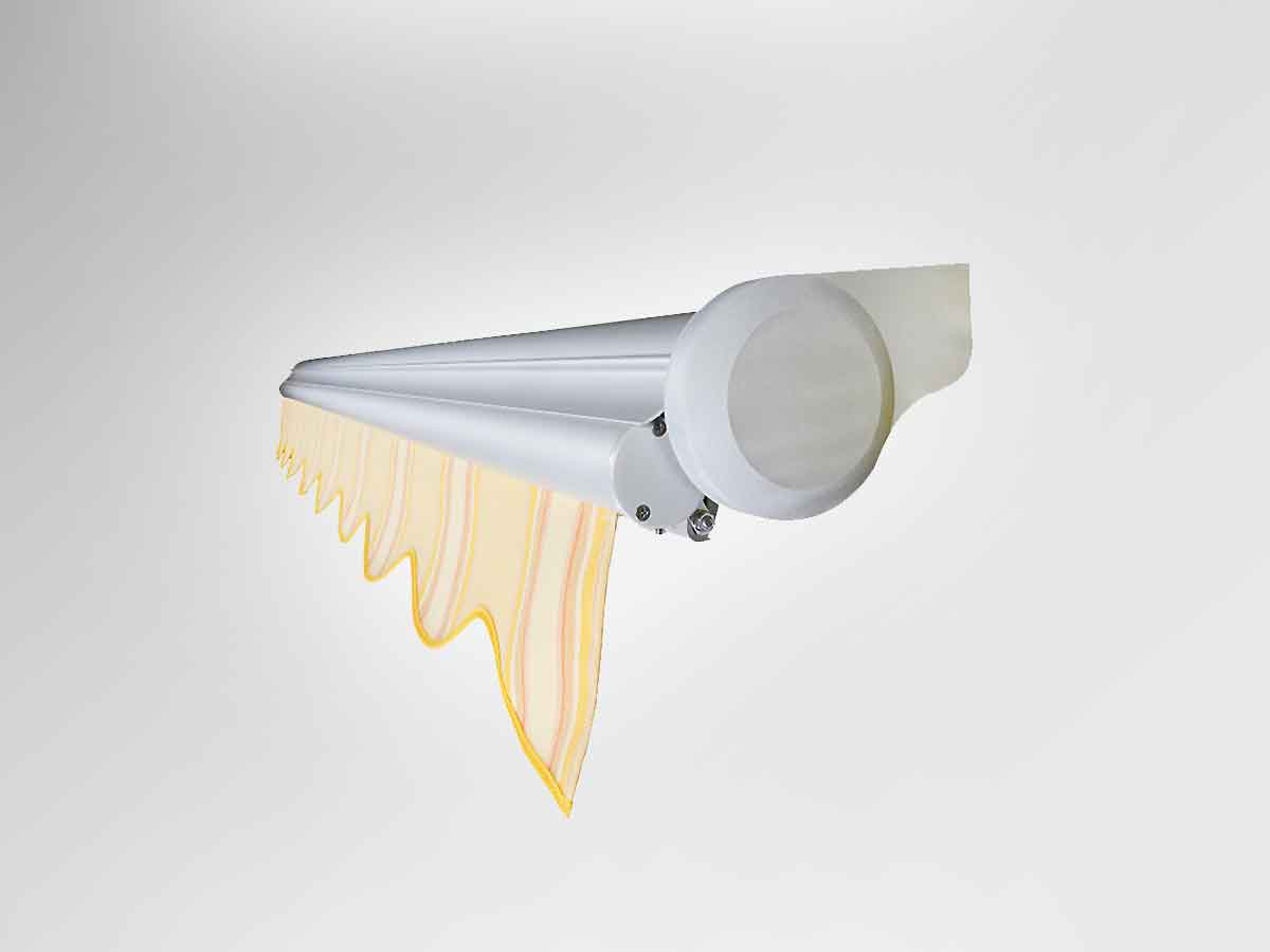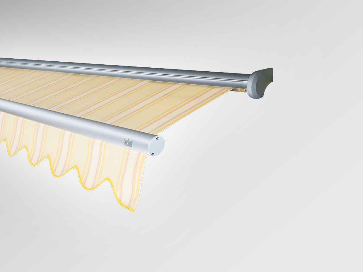 - Armprofile in Aluminium, stranggepresst, starke innenliegende Federn, Sicherung gegen eventuelles Hochschlagen, Armhalter und Mittelgelenke wartungsfrei gelagert, Doppelseil